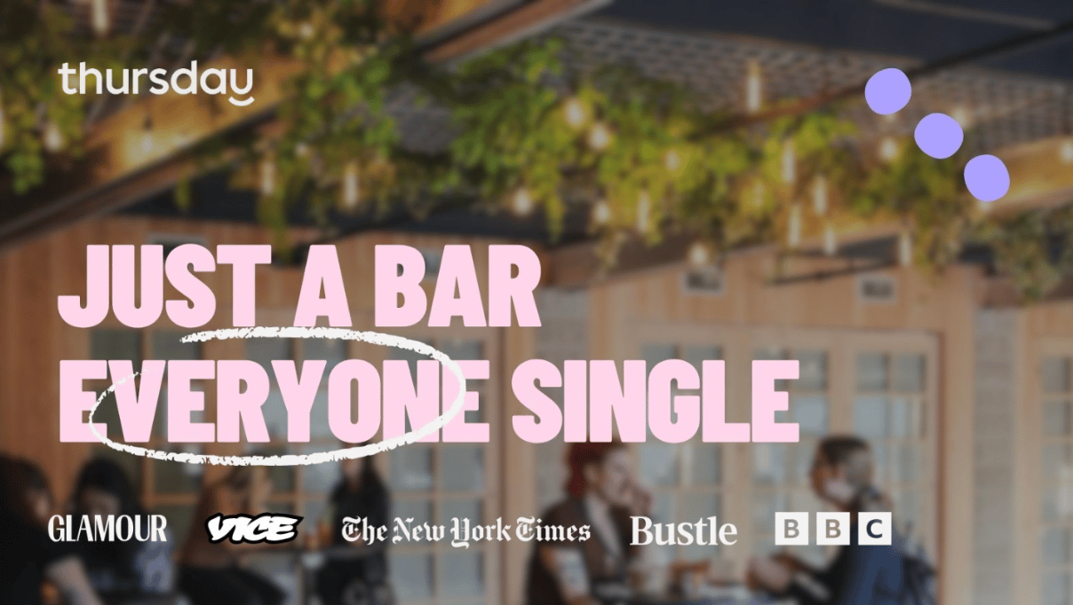 A packed mixer for singles aged 21–35 hosted by the Thursday App, taking over Bow Market’s upstairs bar and balcony for a night of conversation, music, and drinks. The crowd’s there to chat, laugh, and actually meet offline, with your first drink included and a few light icebreakers to keep things moving